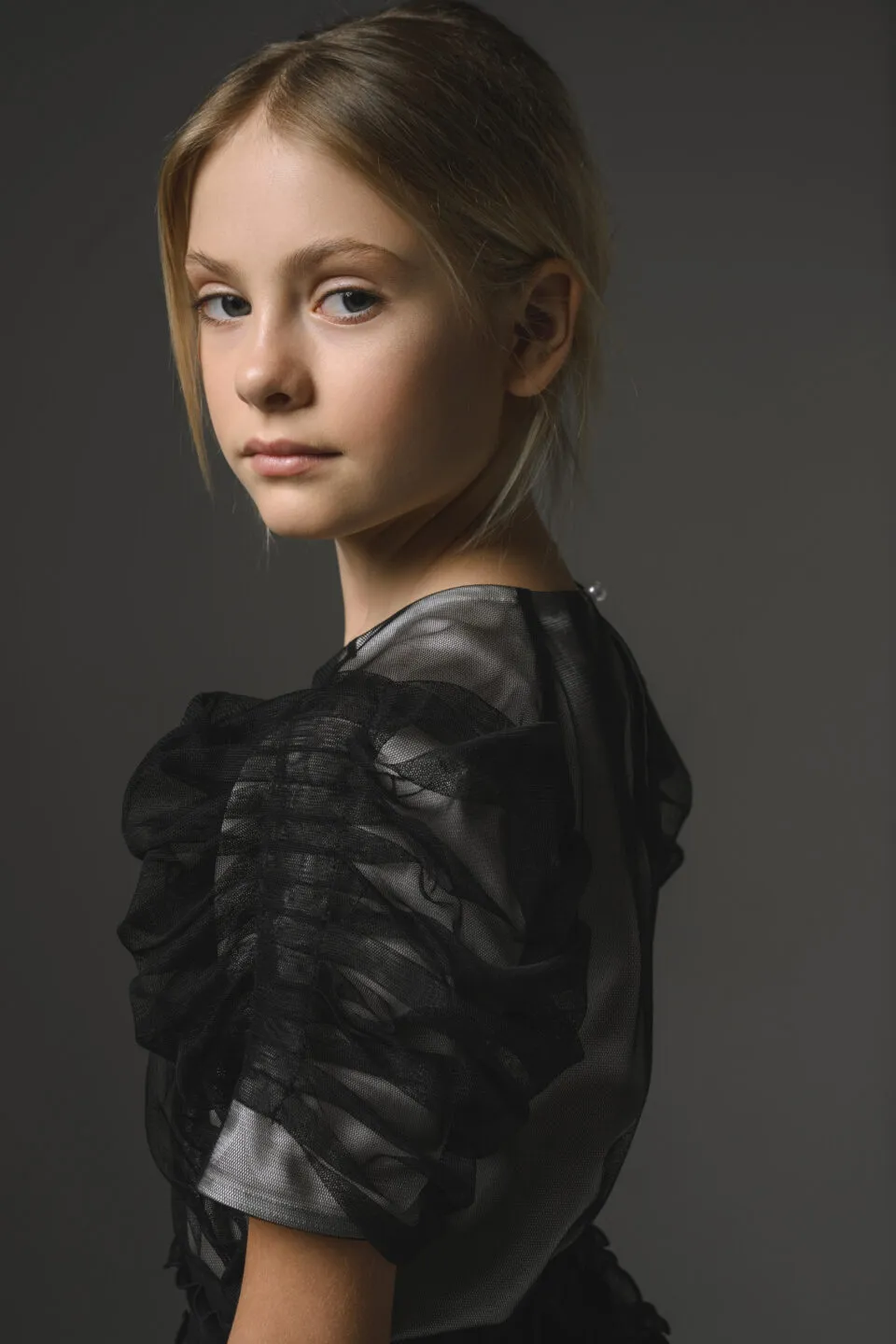На модели размер: 9-134, ОГ 64, ОТ 57, ОБ 70 Параметры модели: рост 134, ОГ 62, ОТ 50, ОБ 67